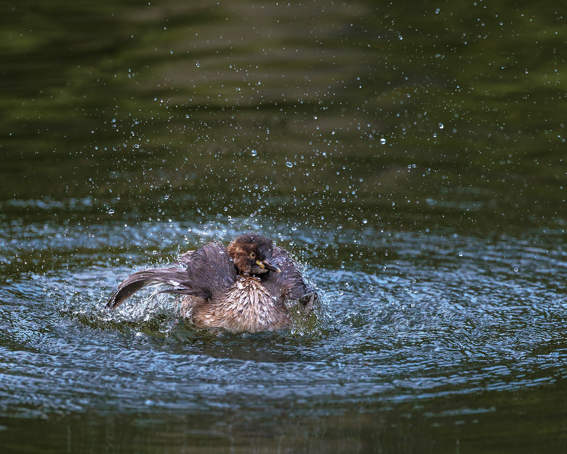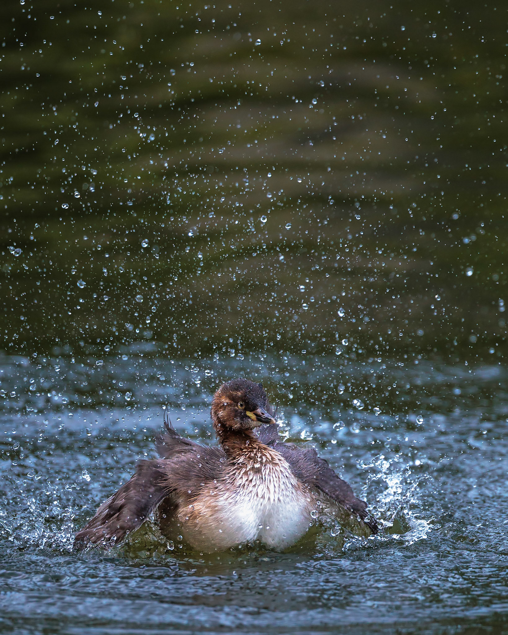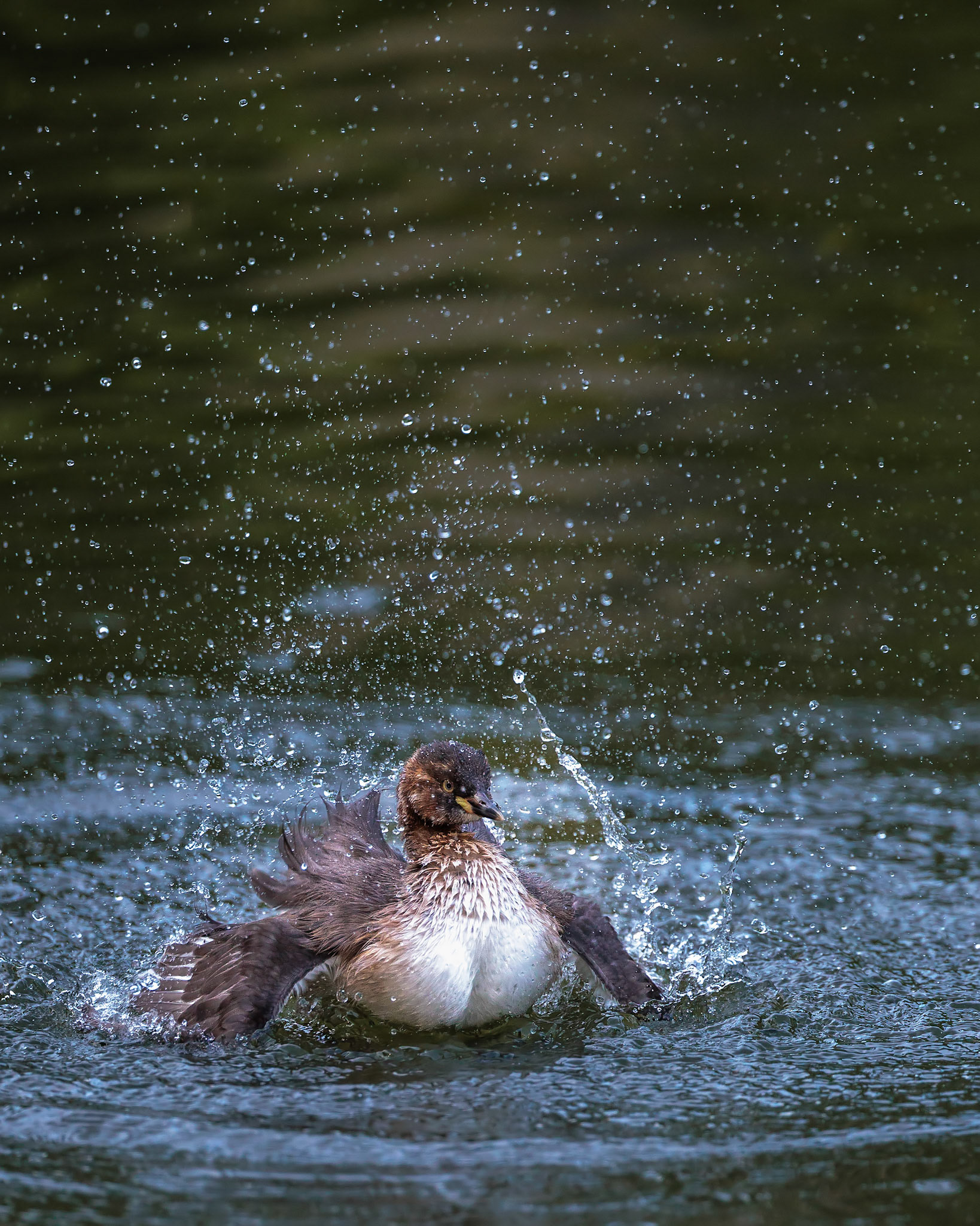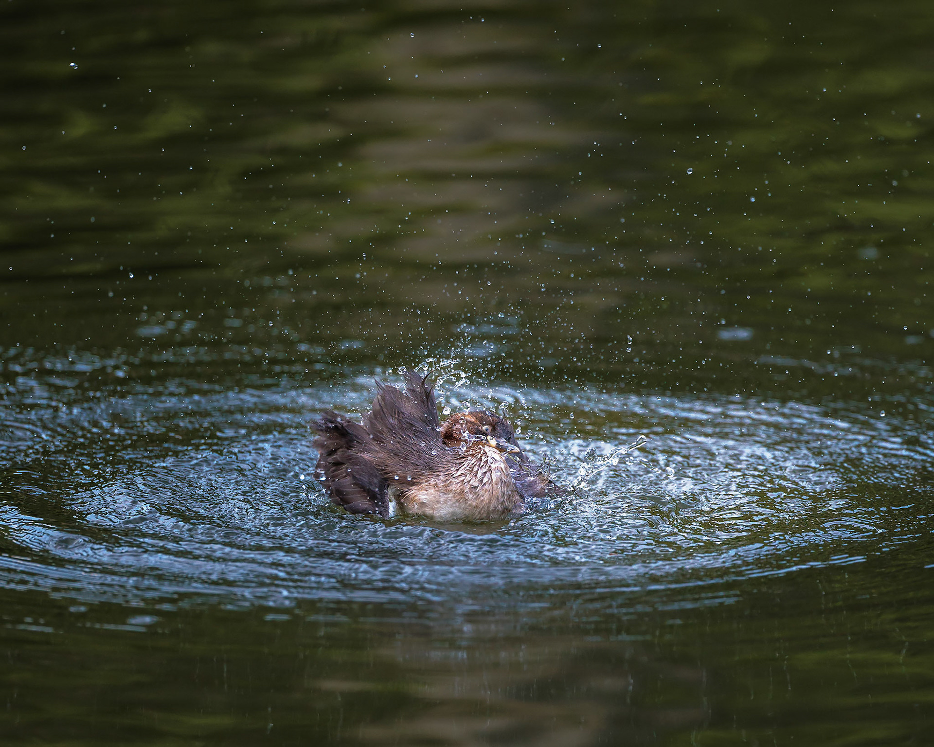 20220610@薬師池公園_カイツブリ水浴び