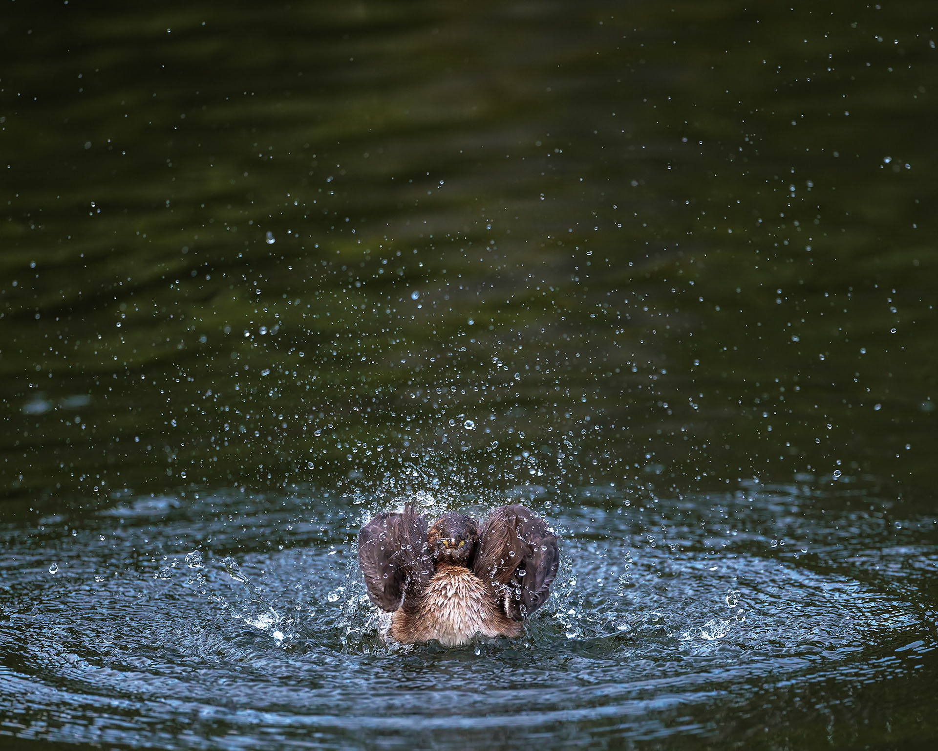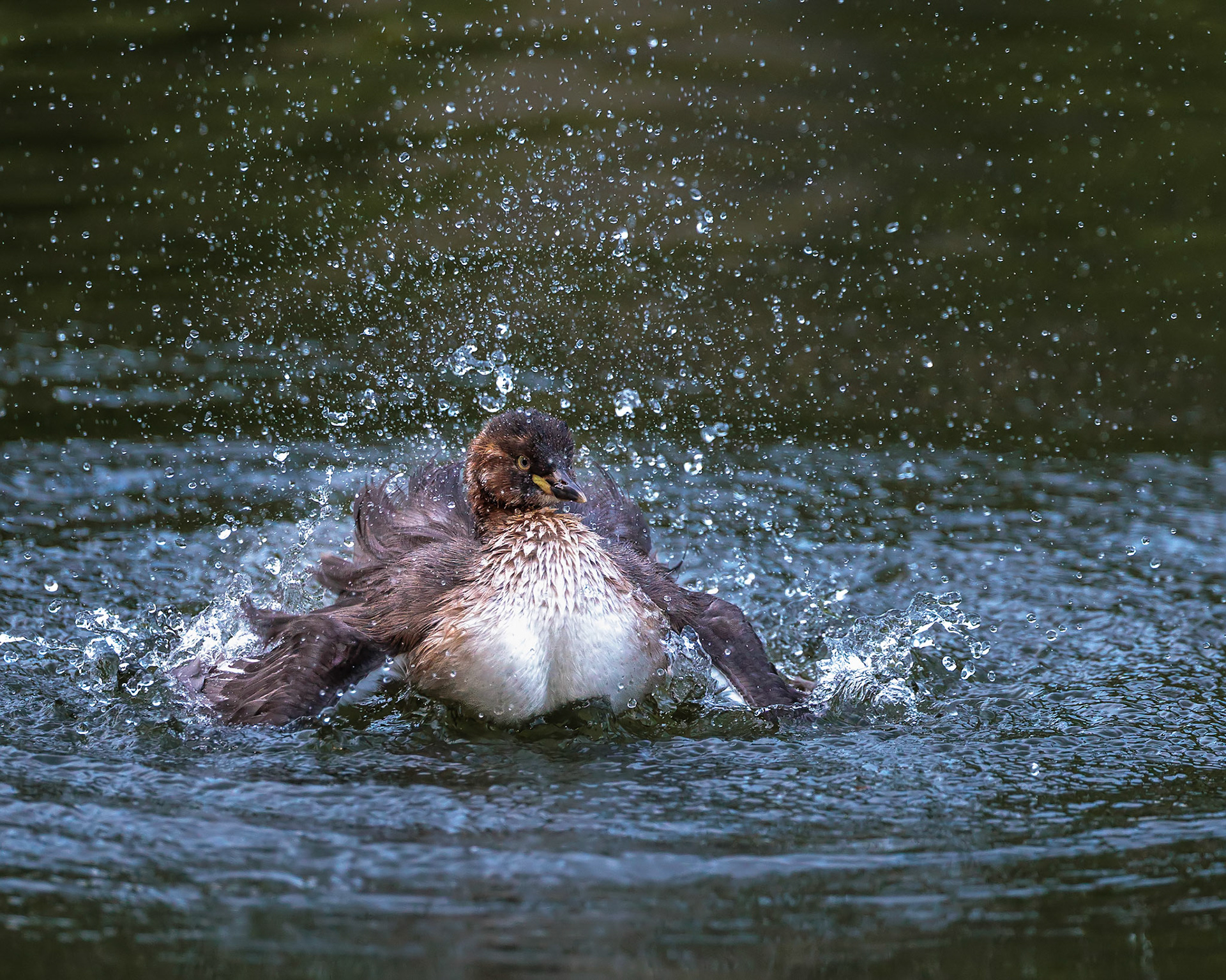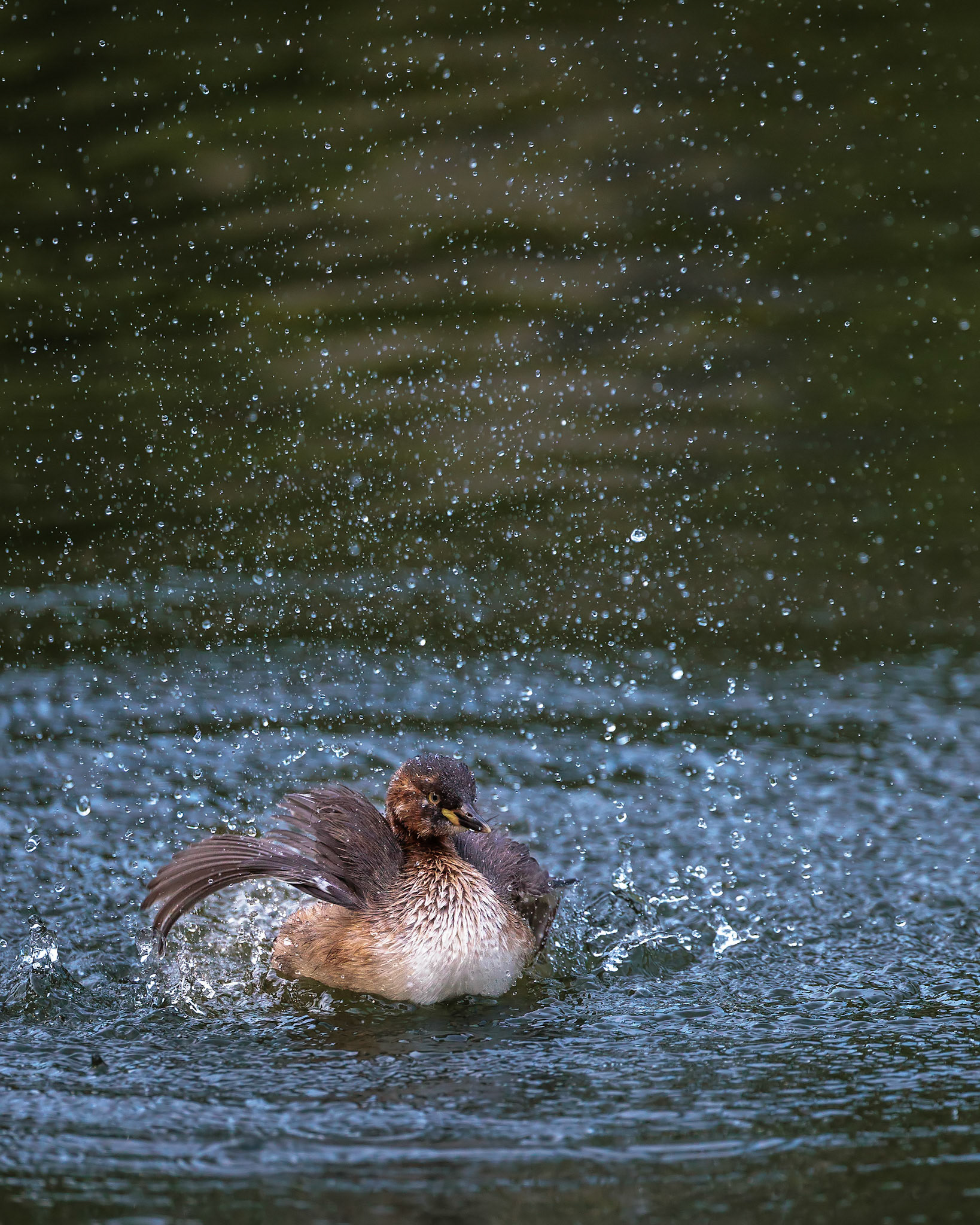 20220610@薬師池公園_カイツブリ水浴び