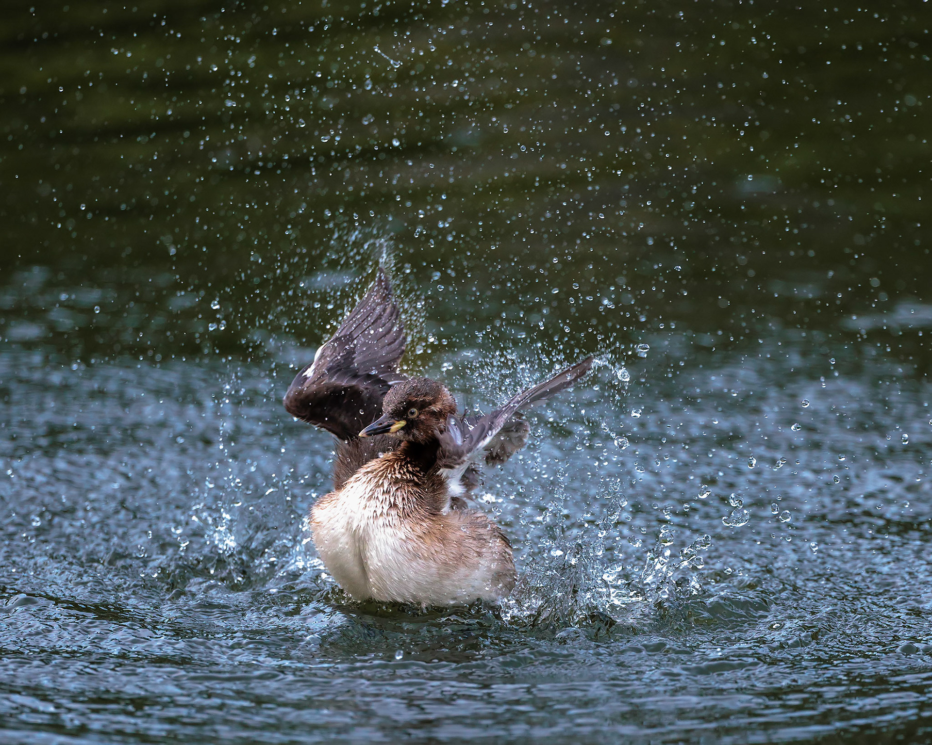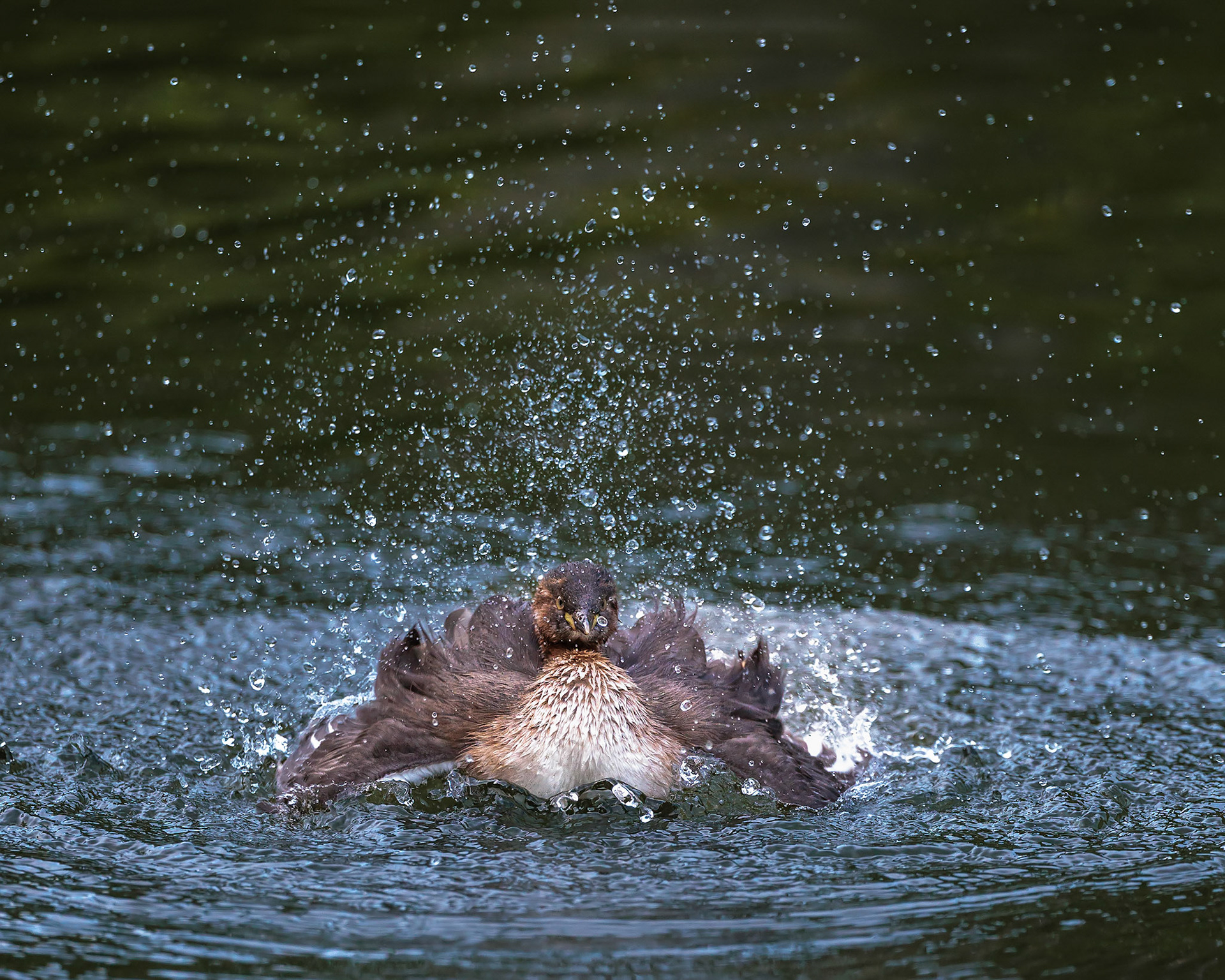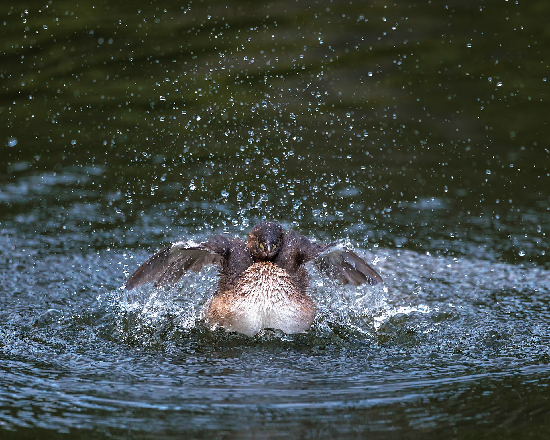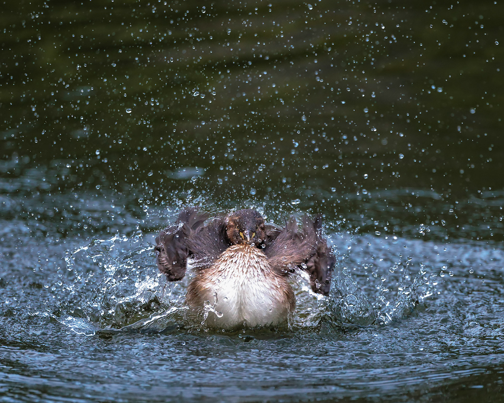 20220610@薬師池公園_カイツブリ水浴び