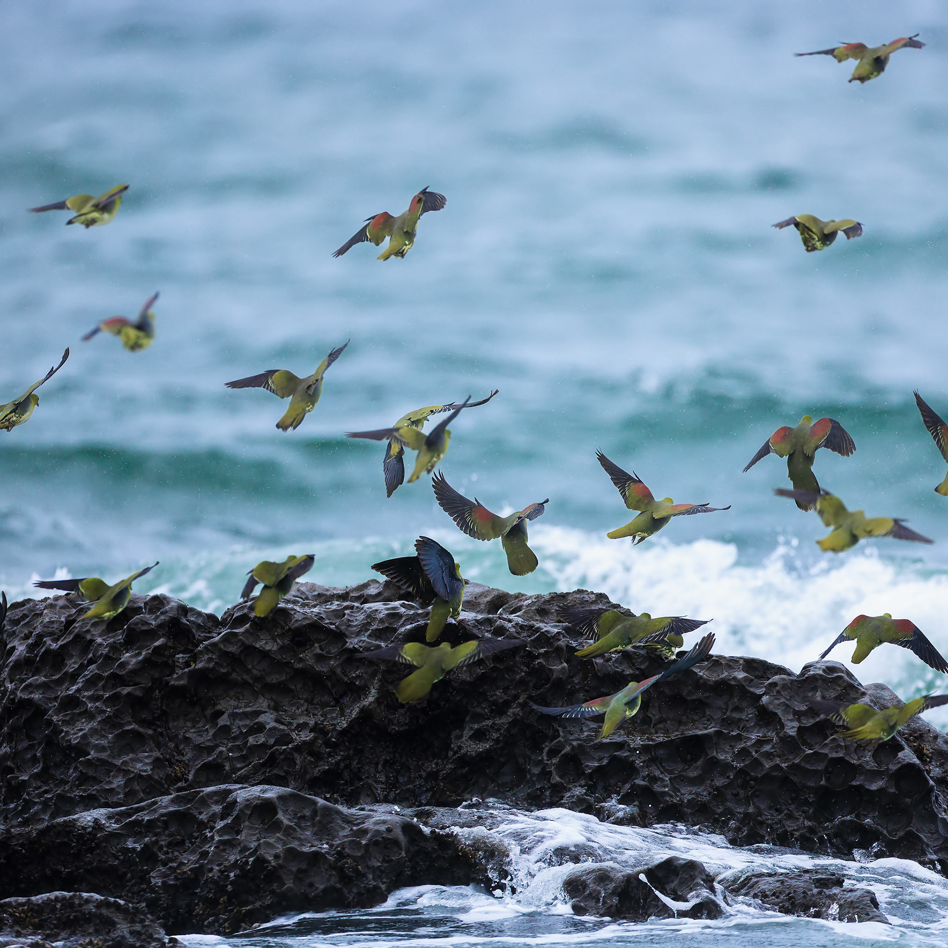 なった瞬間、30羽ほどのアオバトが飛来した。