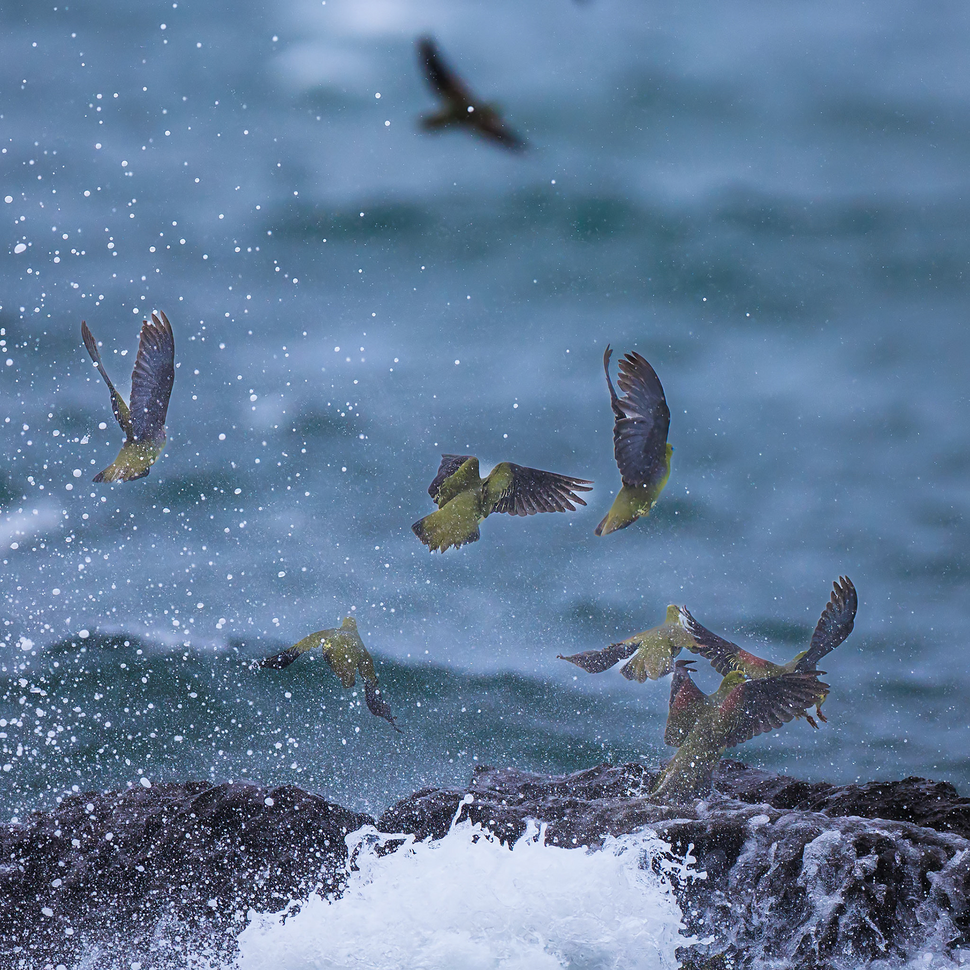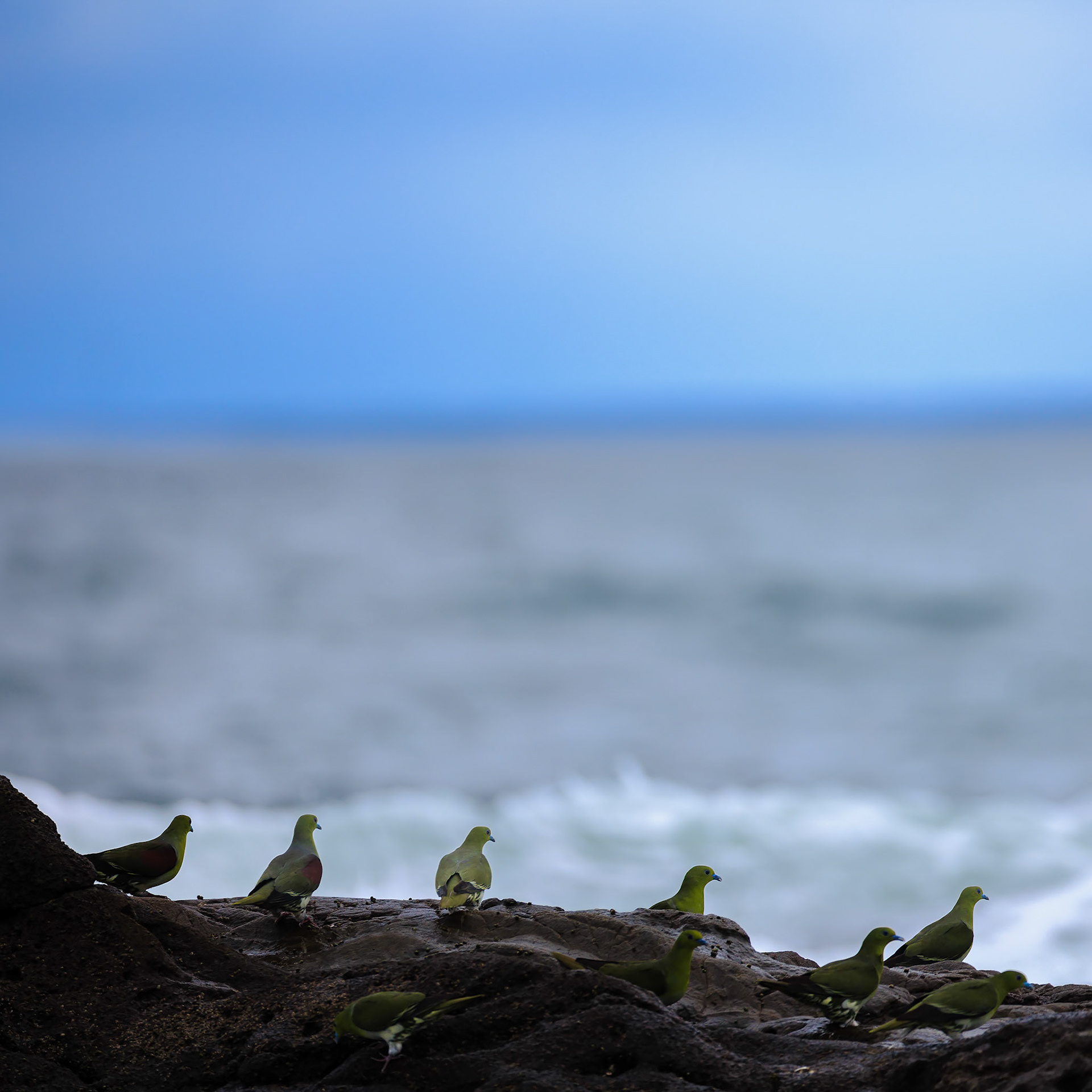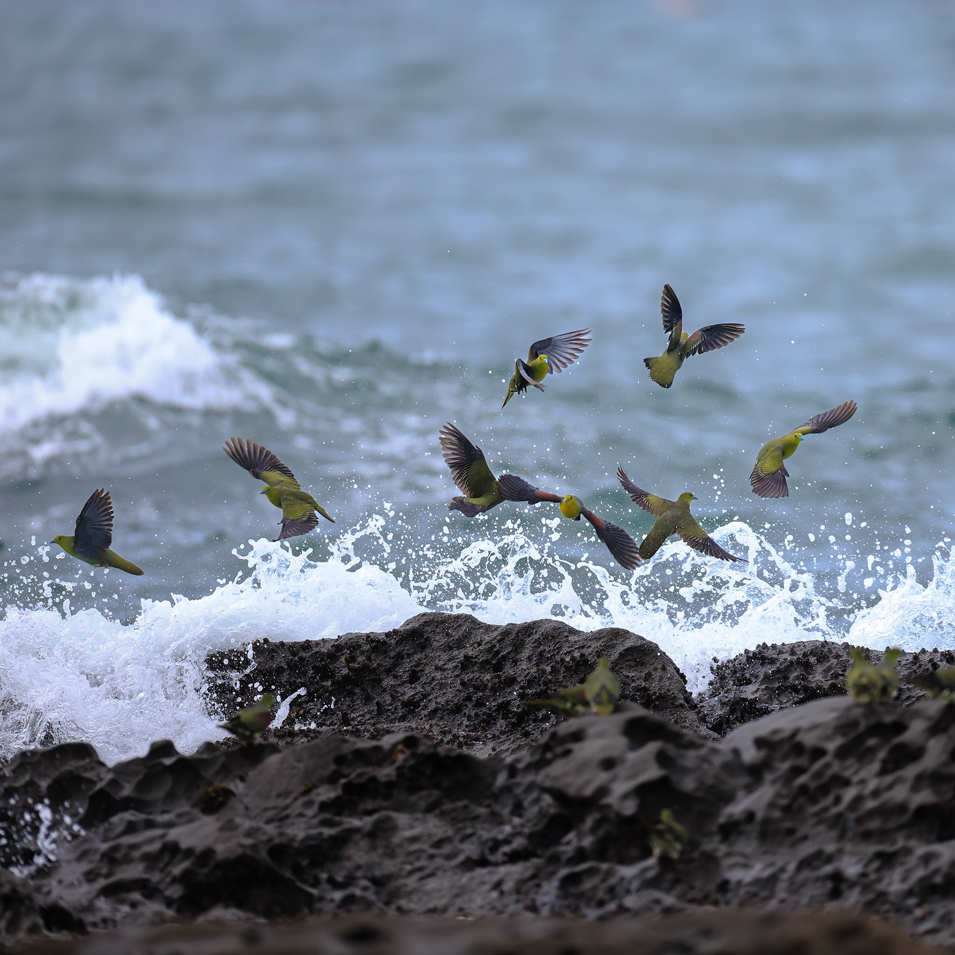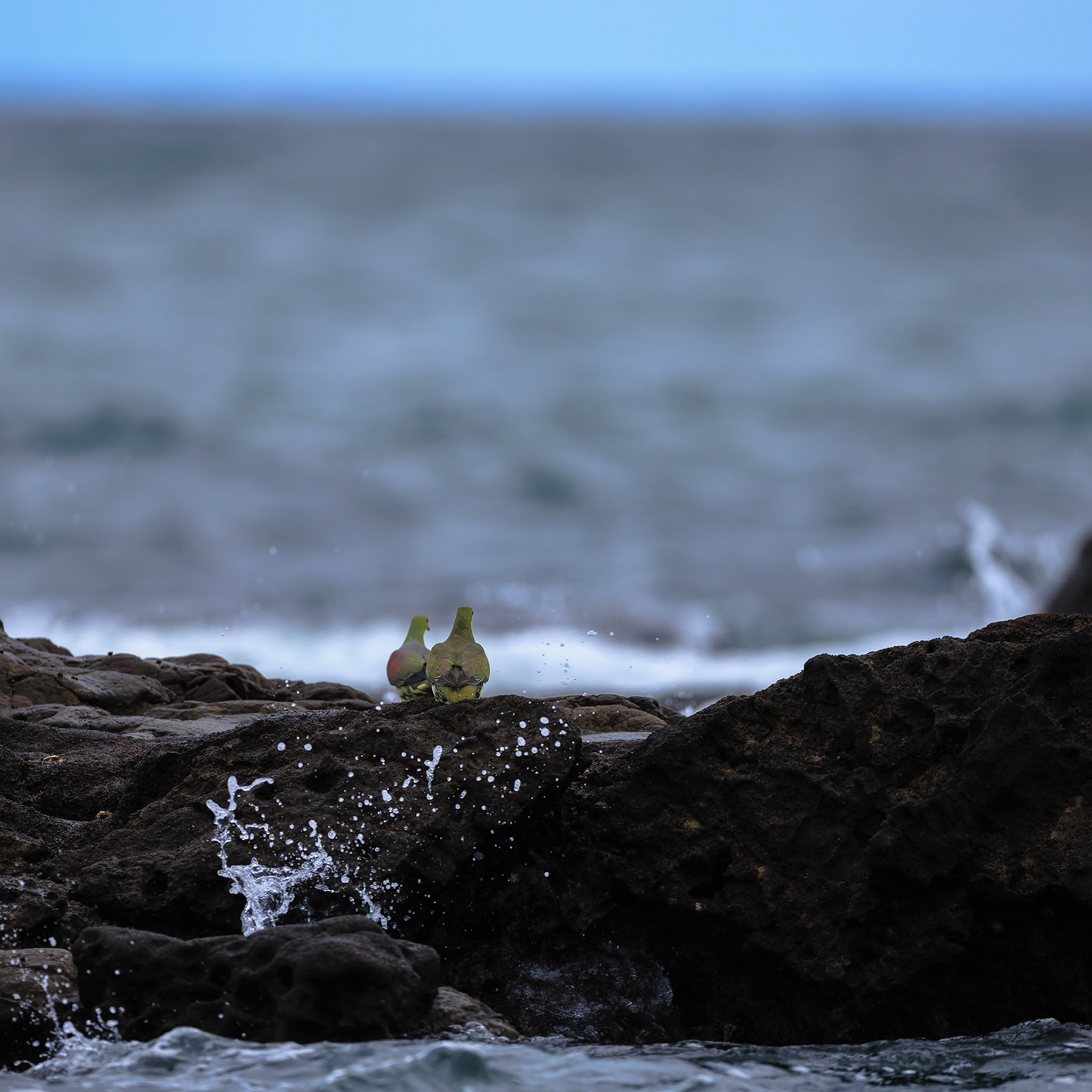 アオバトたちは潮に呑まれて楽しそうだった!