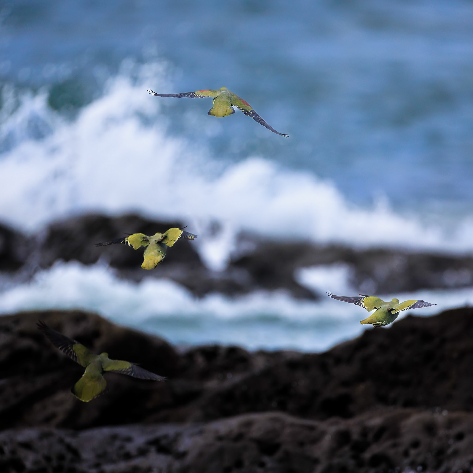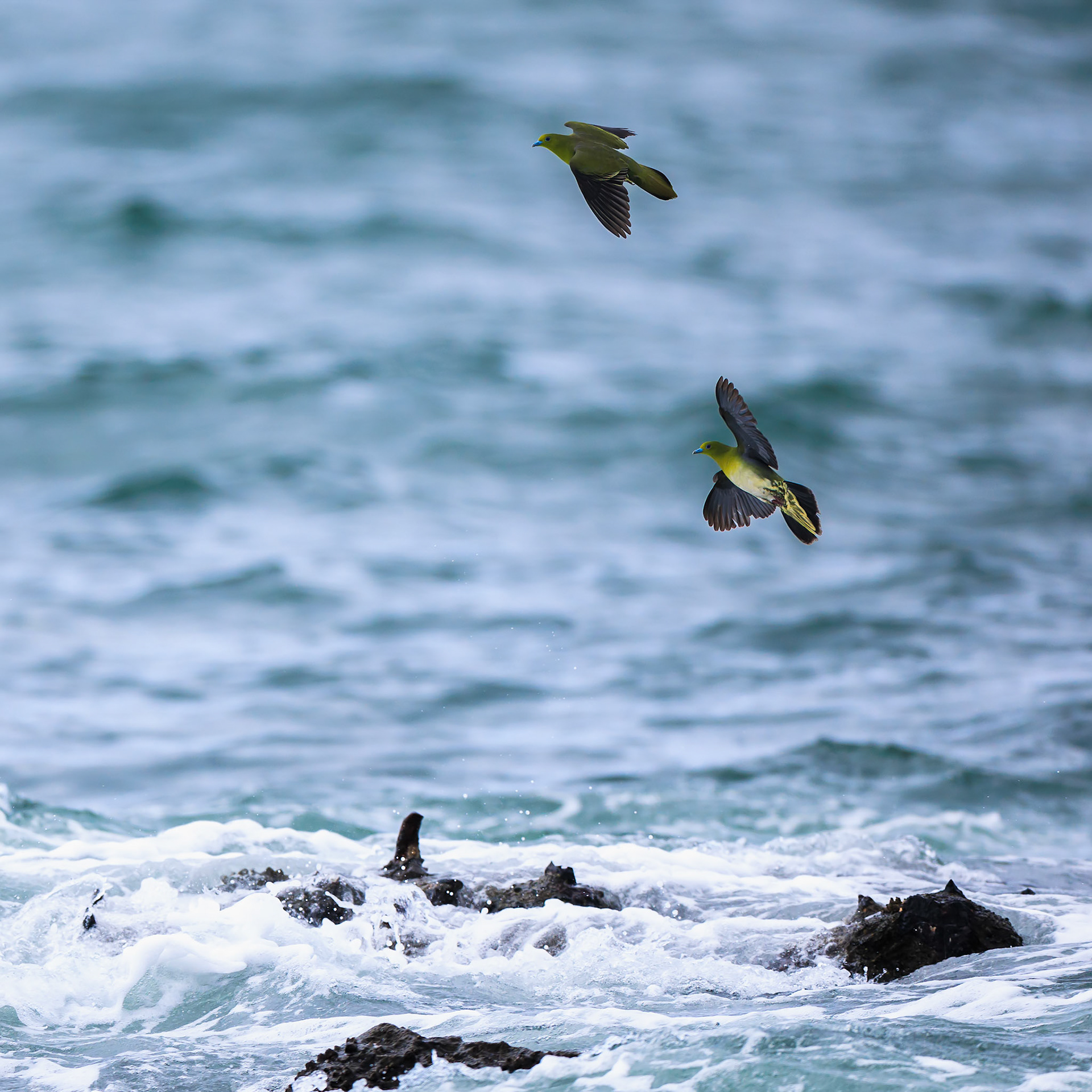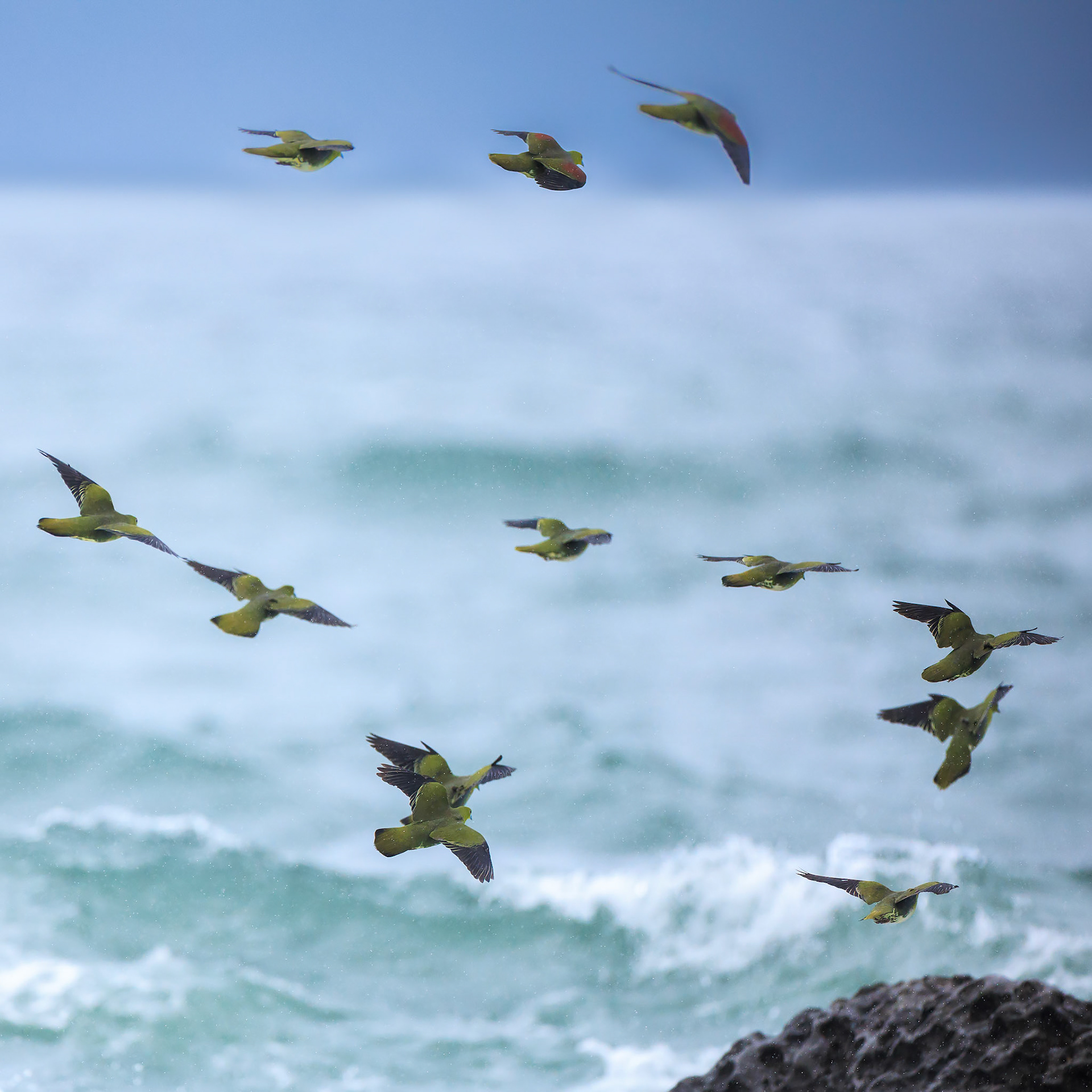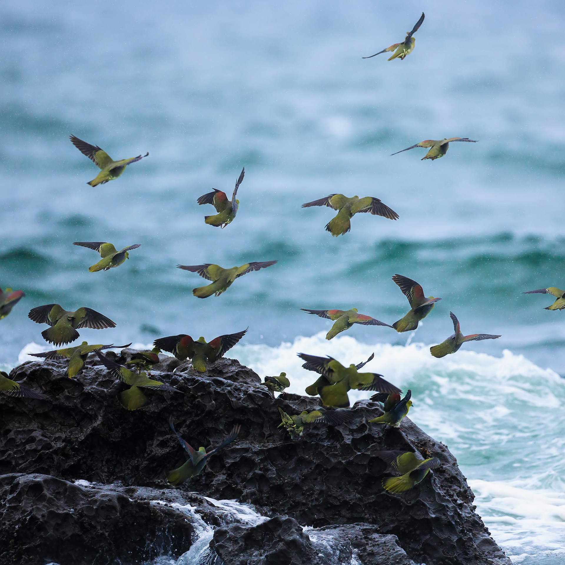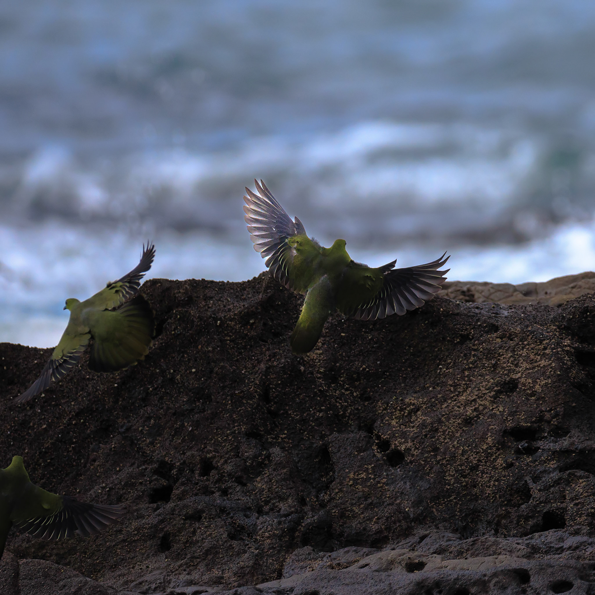 アオバトたちは潮に呑まれて楽しそうだった!