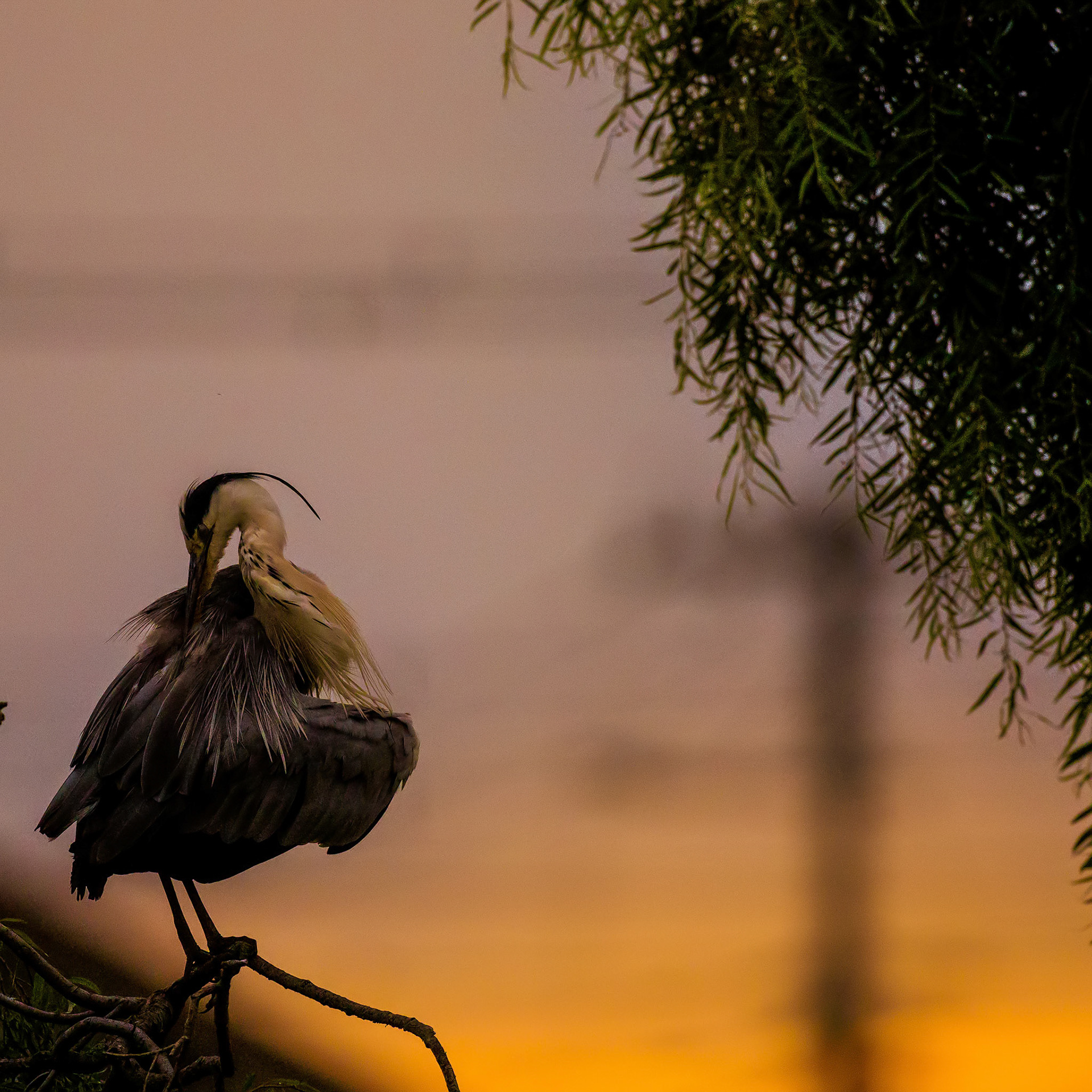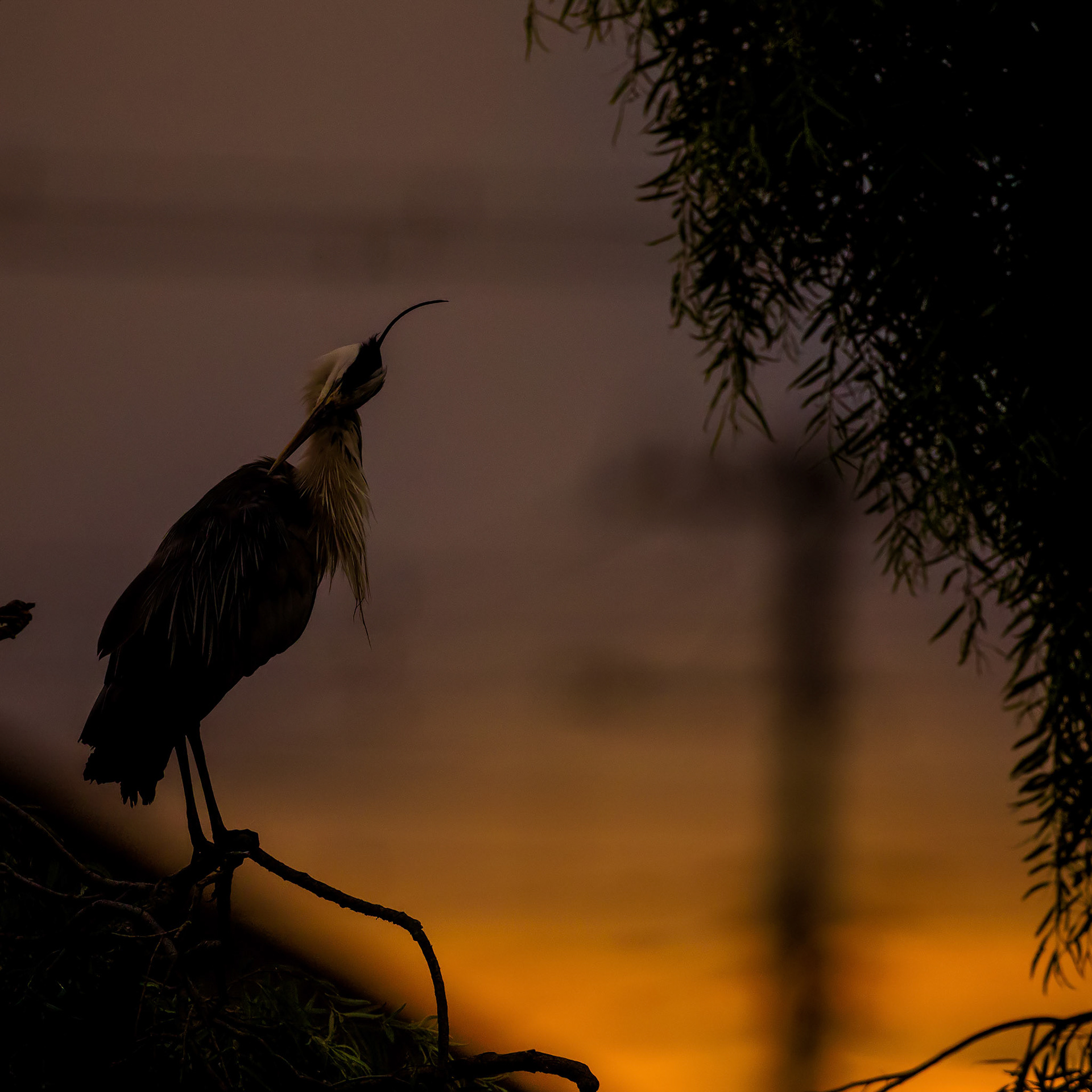 コサギはけたたましい鳴き声でポジション争いしていた。