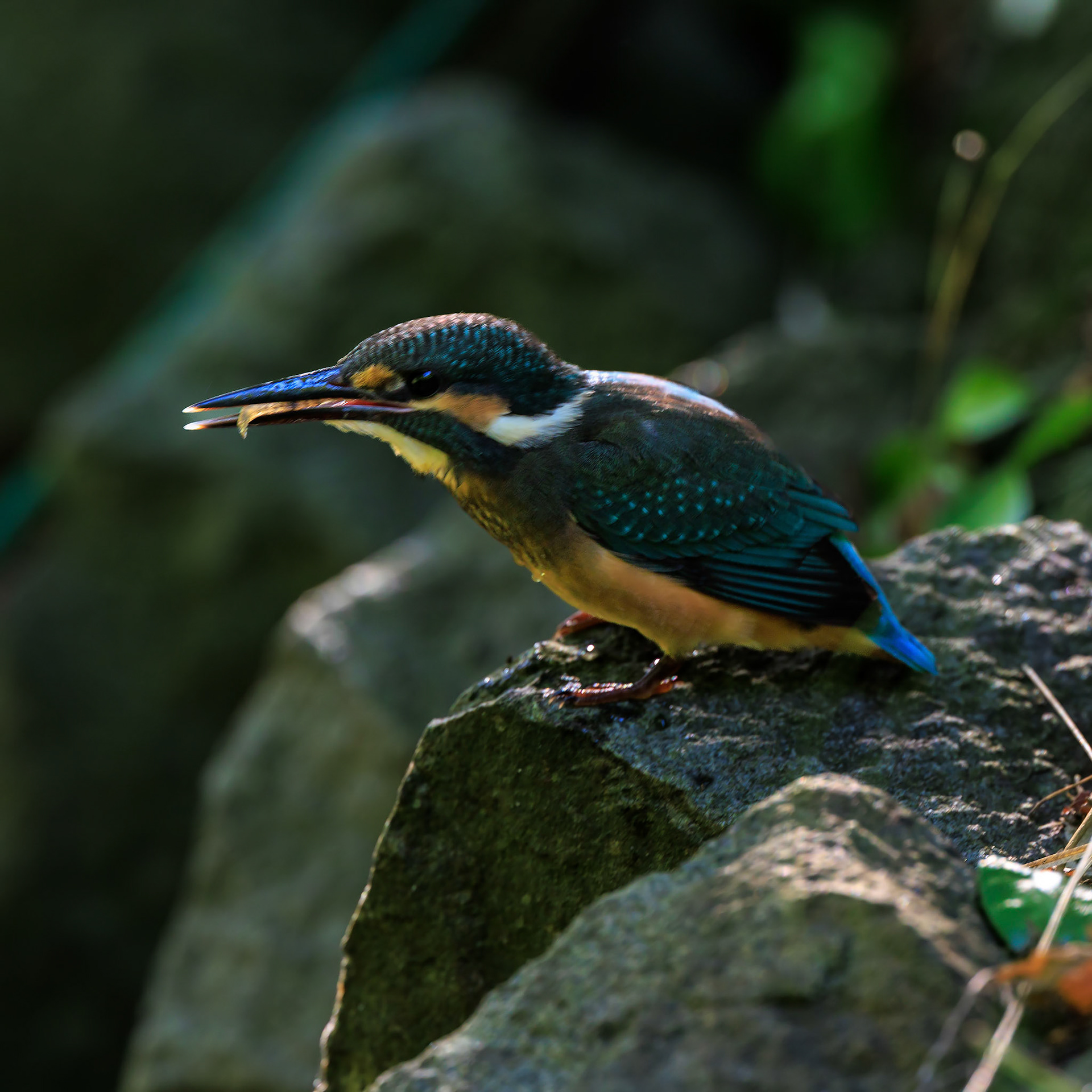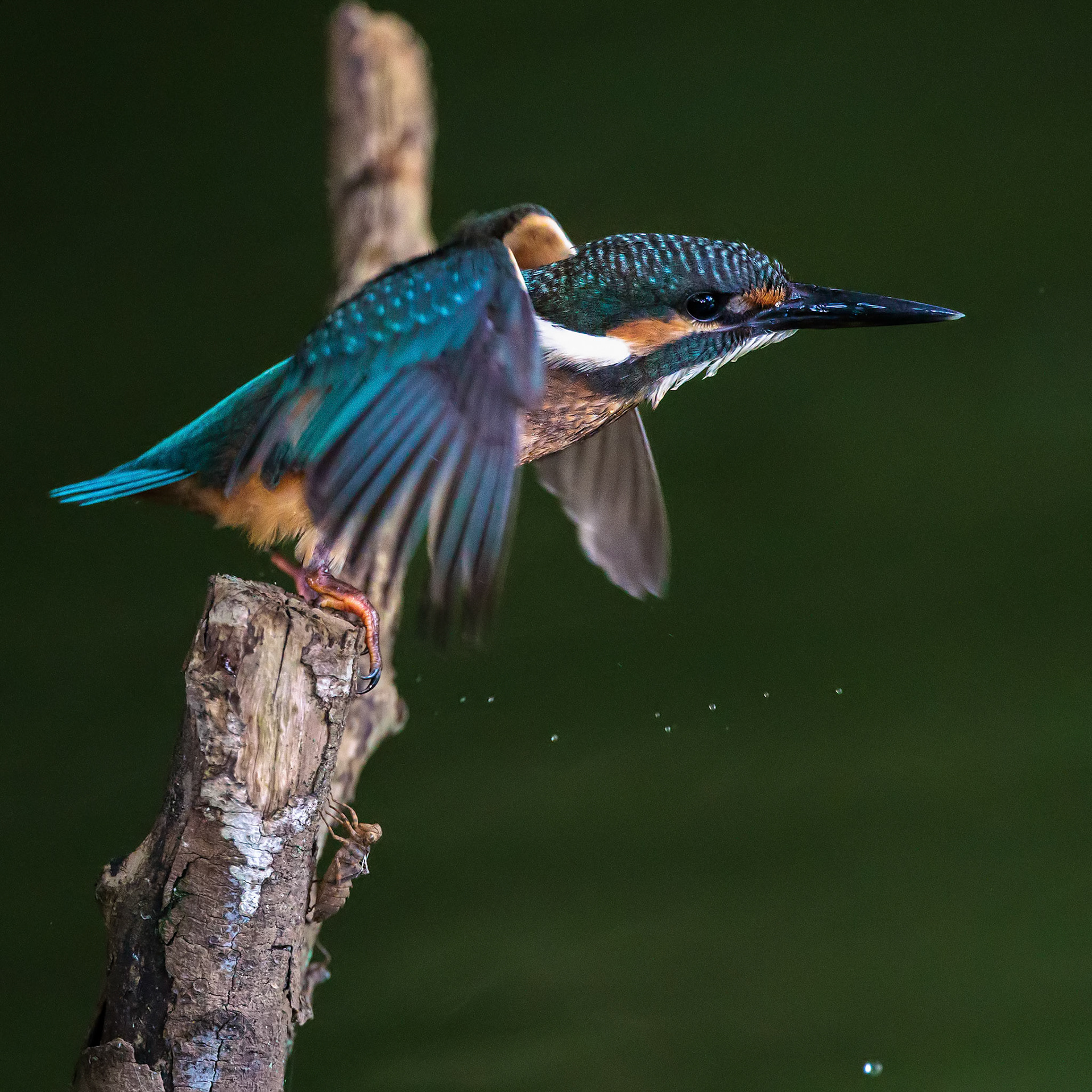 薬師池公園のカワセミ幼鳥の飛び込み。