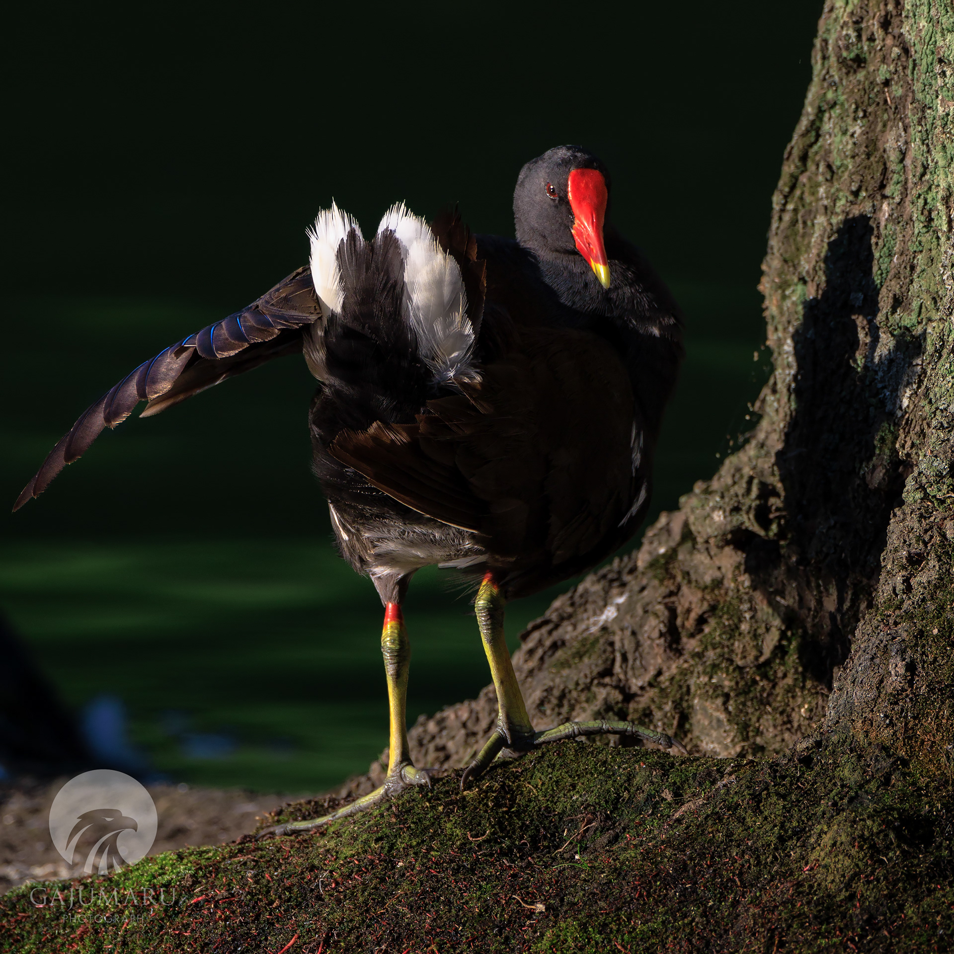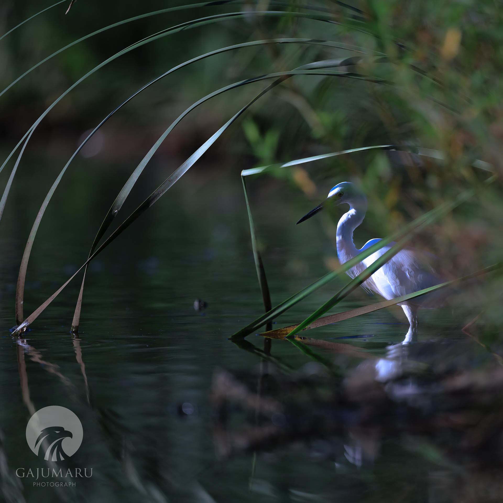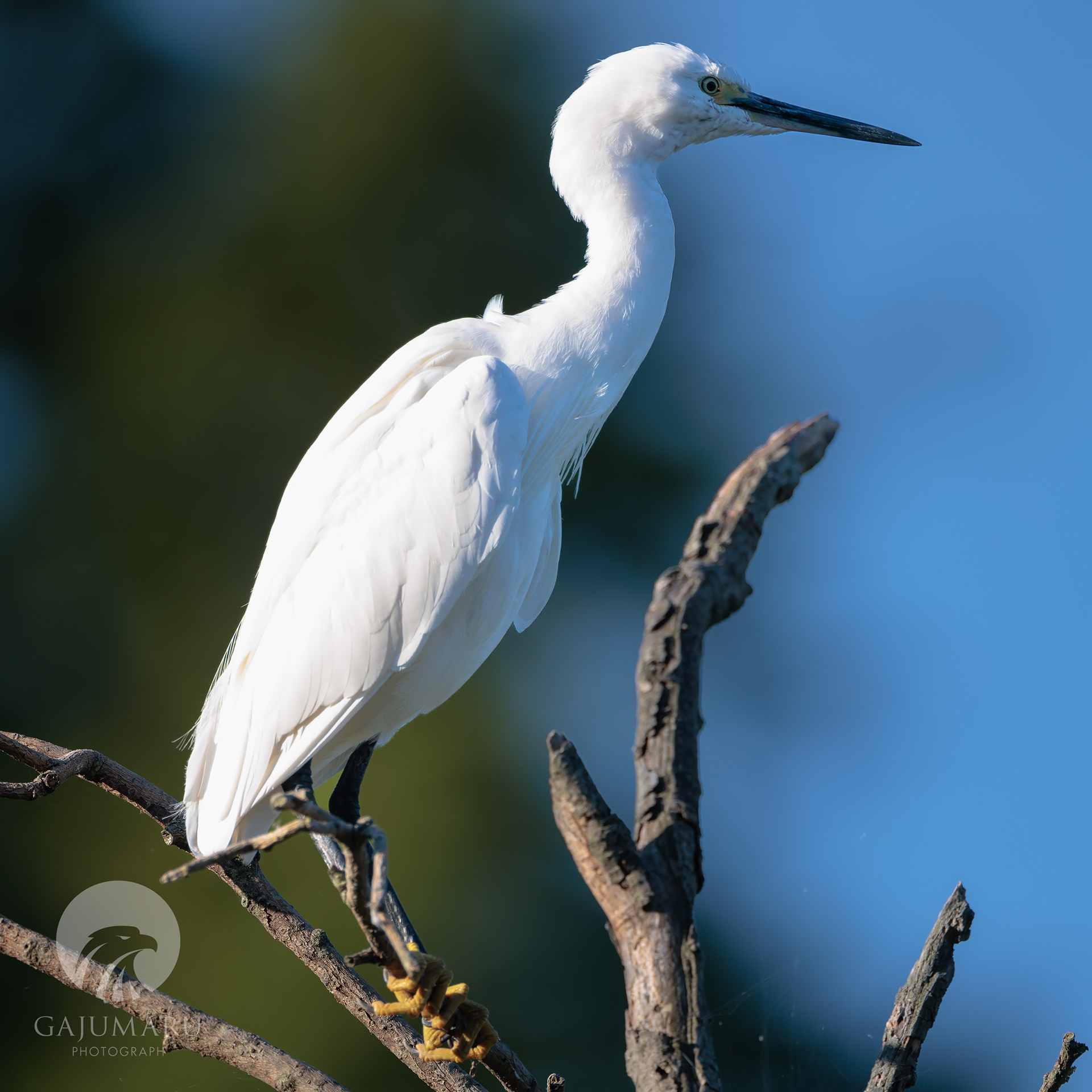 朝は賑やかにコサギと鷭も柳にとまっていた。
