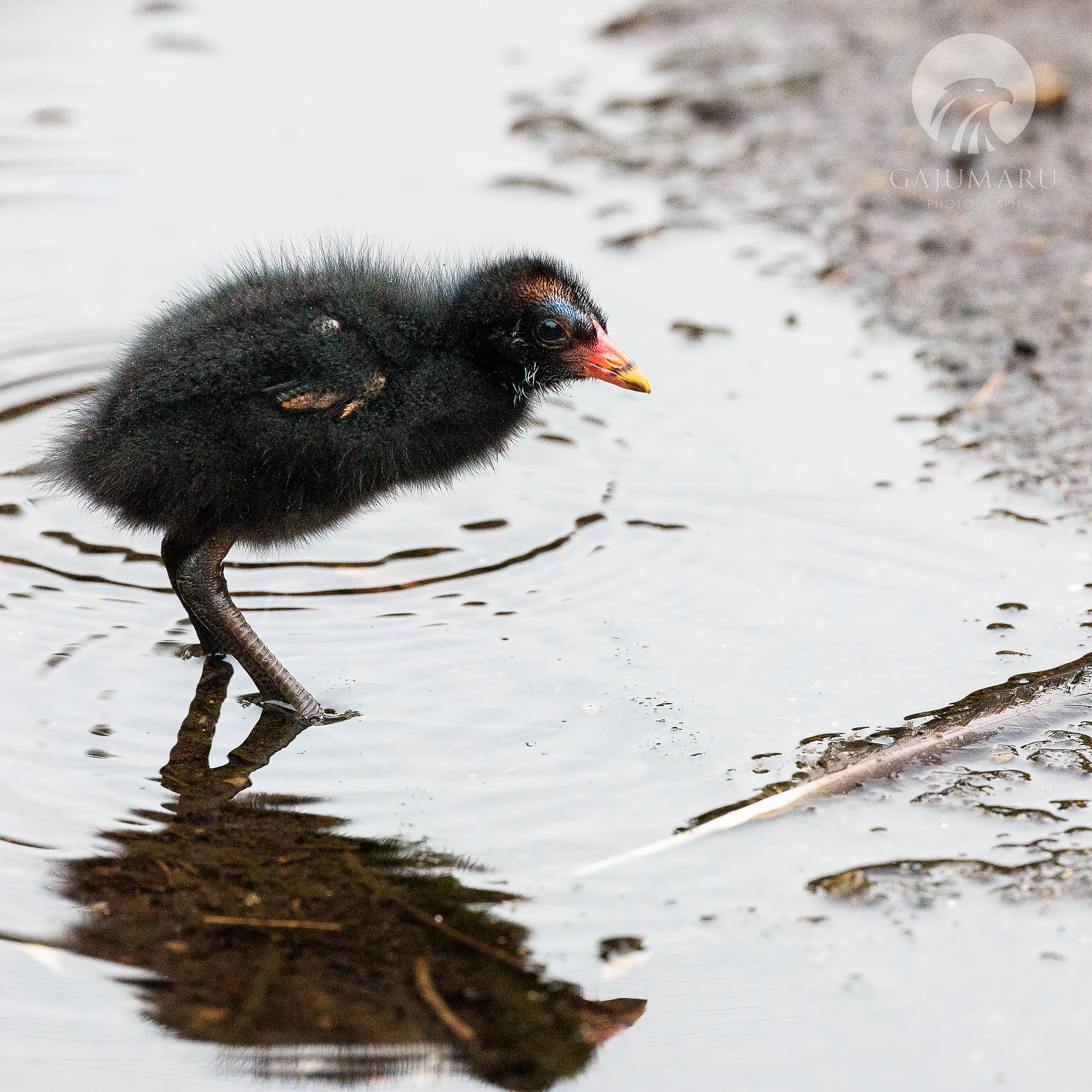 ちょこちょこ歩き回る鷭のヒナ。